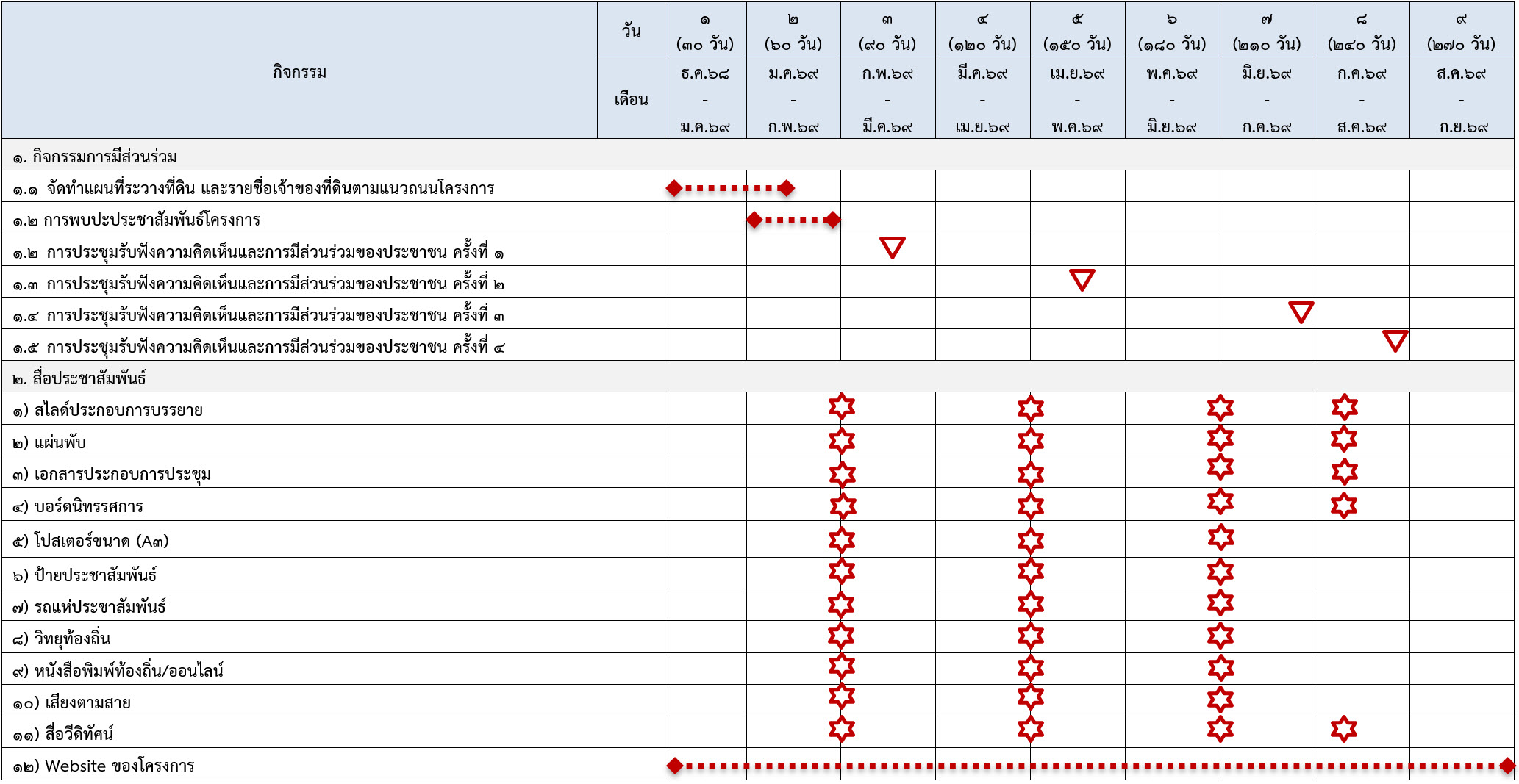 ของแผนการดำเนินงานด้านการมีส่วนร่วมของประชาชน ดังแสดงในตาราง