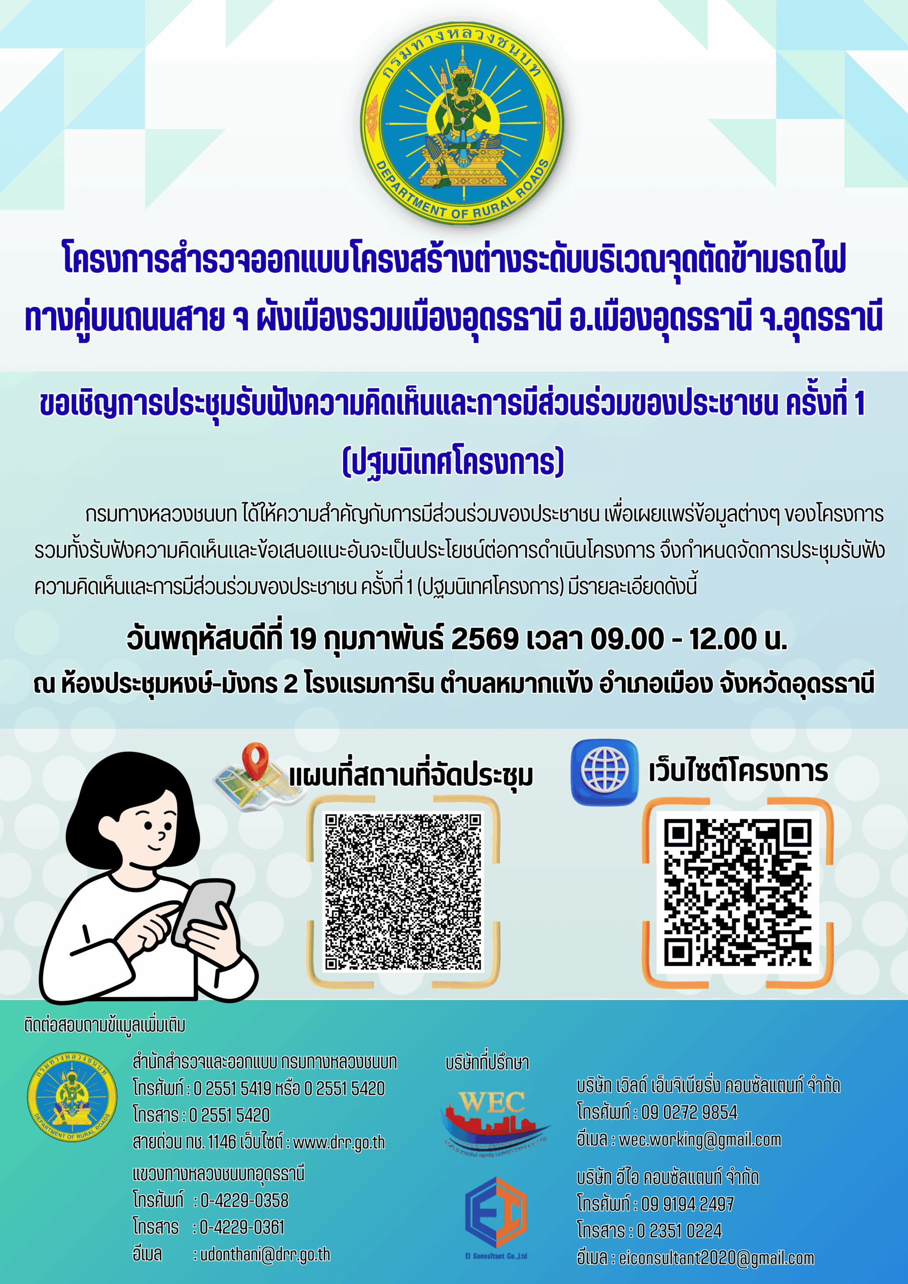 ขอเชิญเข้าร่วมการประชุมรับฟังความคิดเห็นและการมีส่วนร่วมของประชาชน ครั้งที่ 1